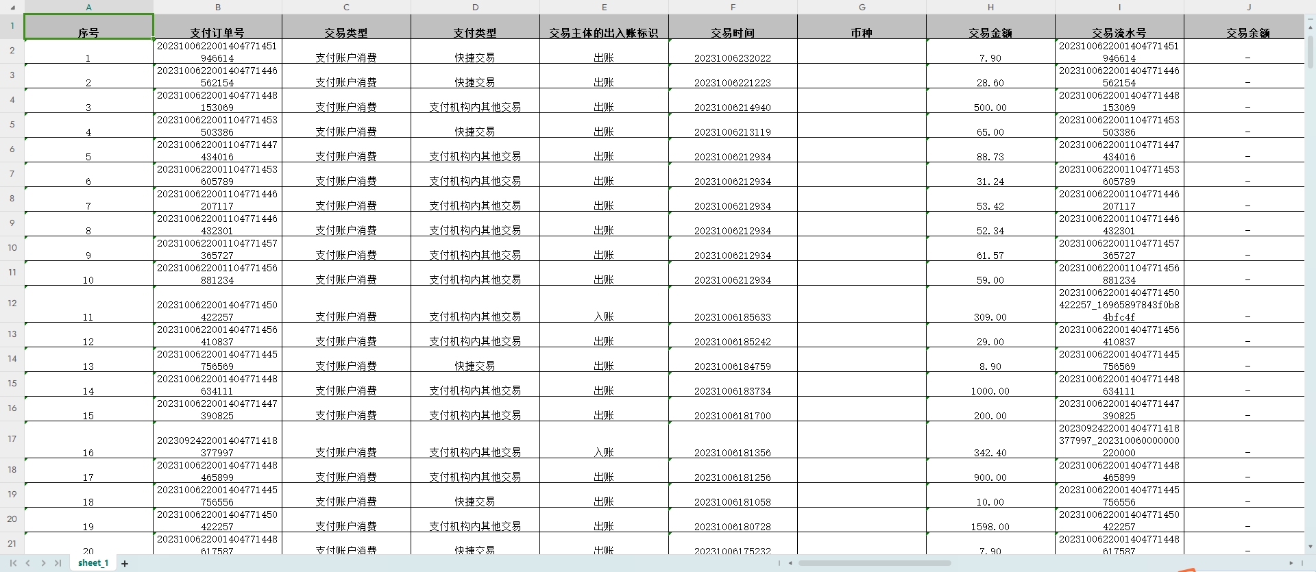 默认查询最近一年流水和当前余额,如有指定时间段,请与在线客服联系